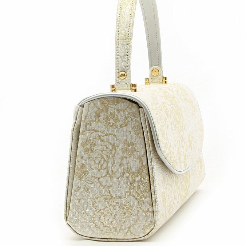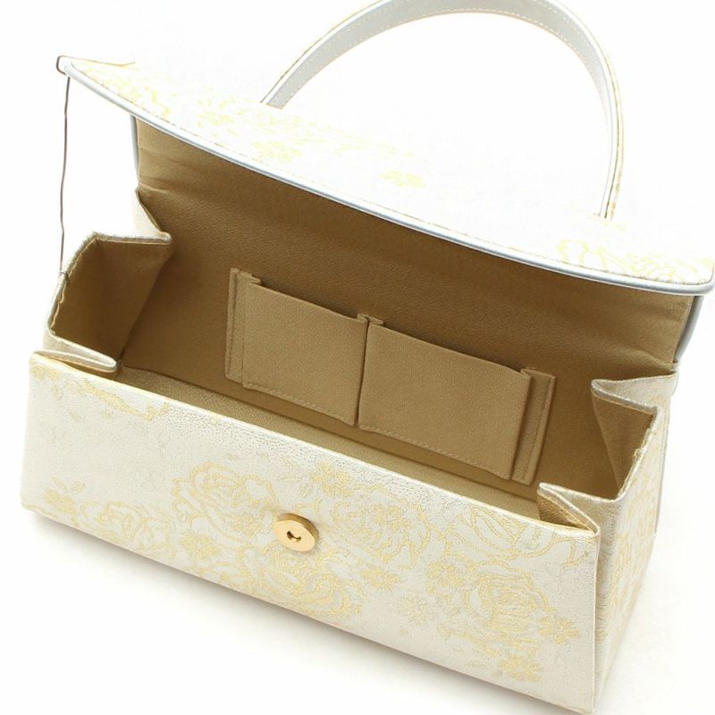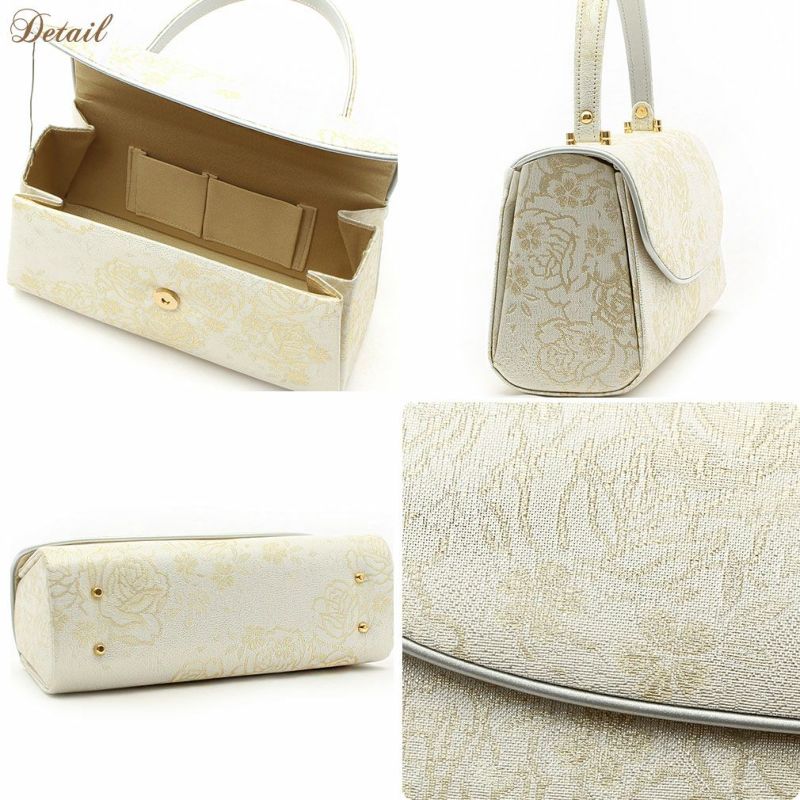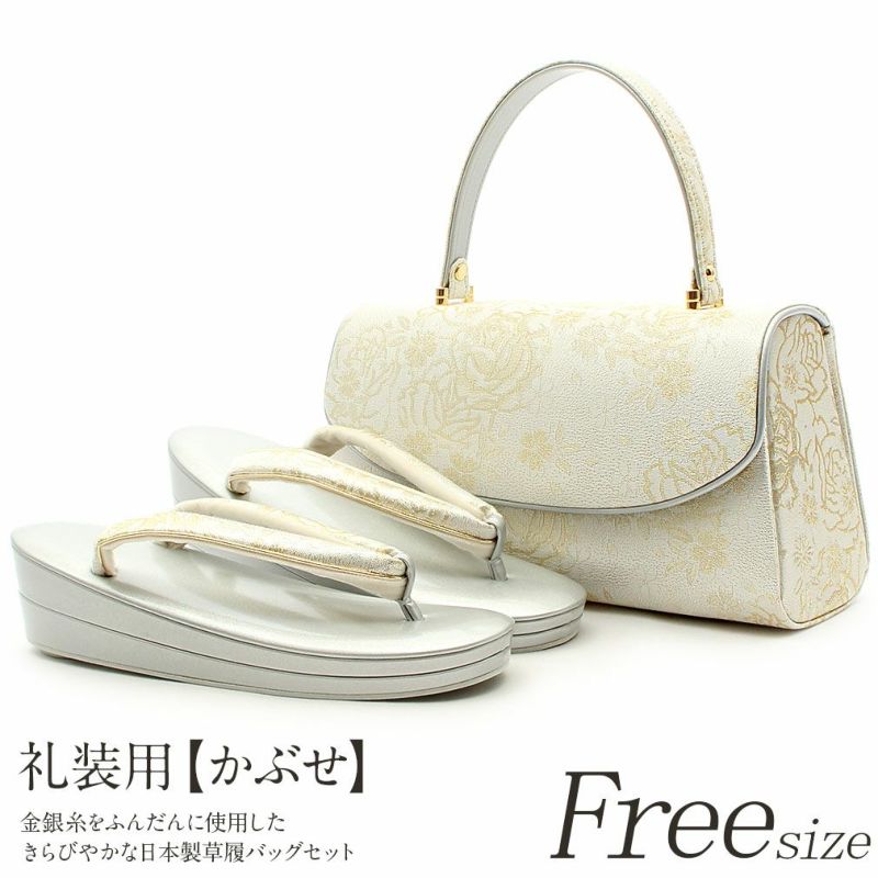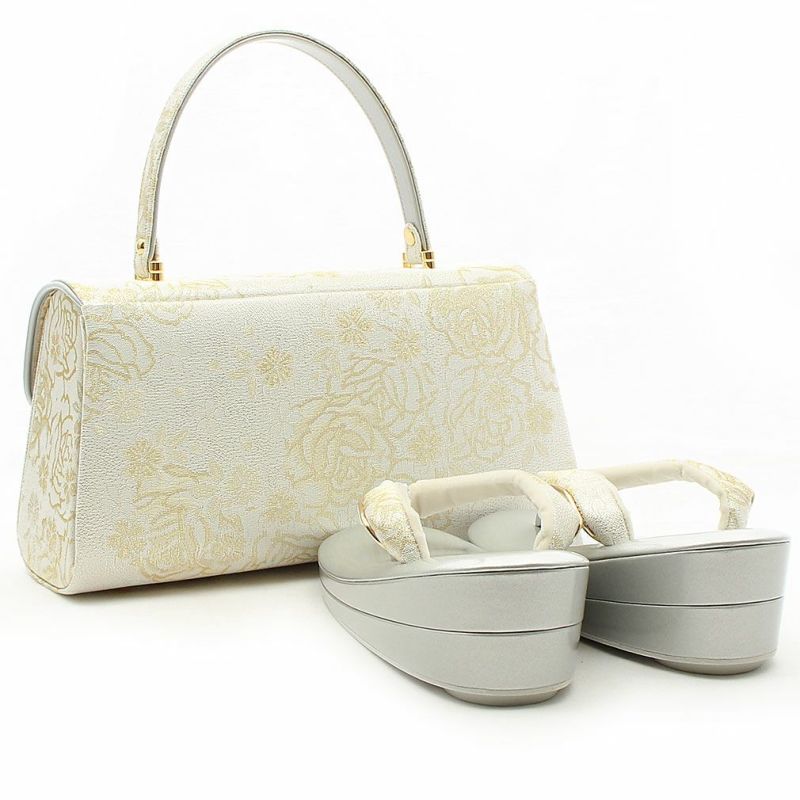 留袖用草履バッグセット 訪問着用 フリーサイズ Lサイズ 日本製 (かぶせタイプ)<ホワイトシルバー/バラ>