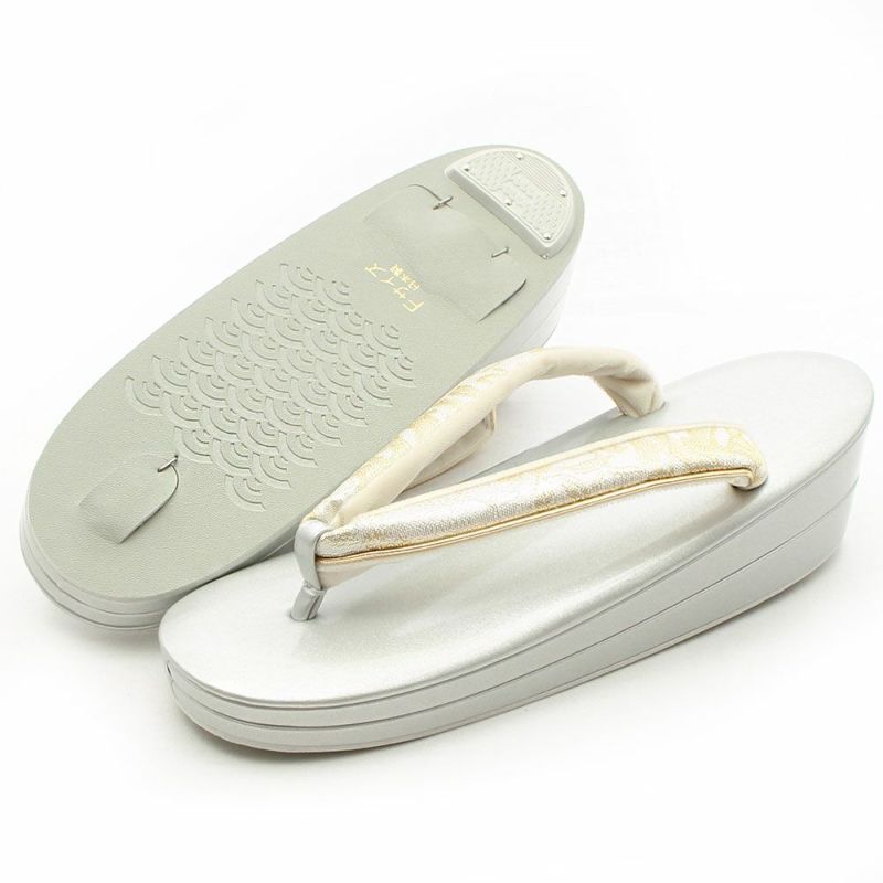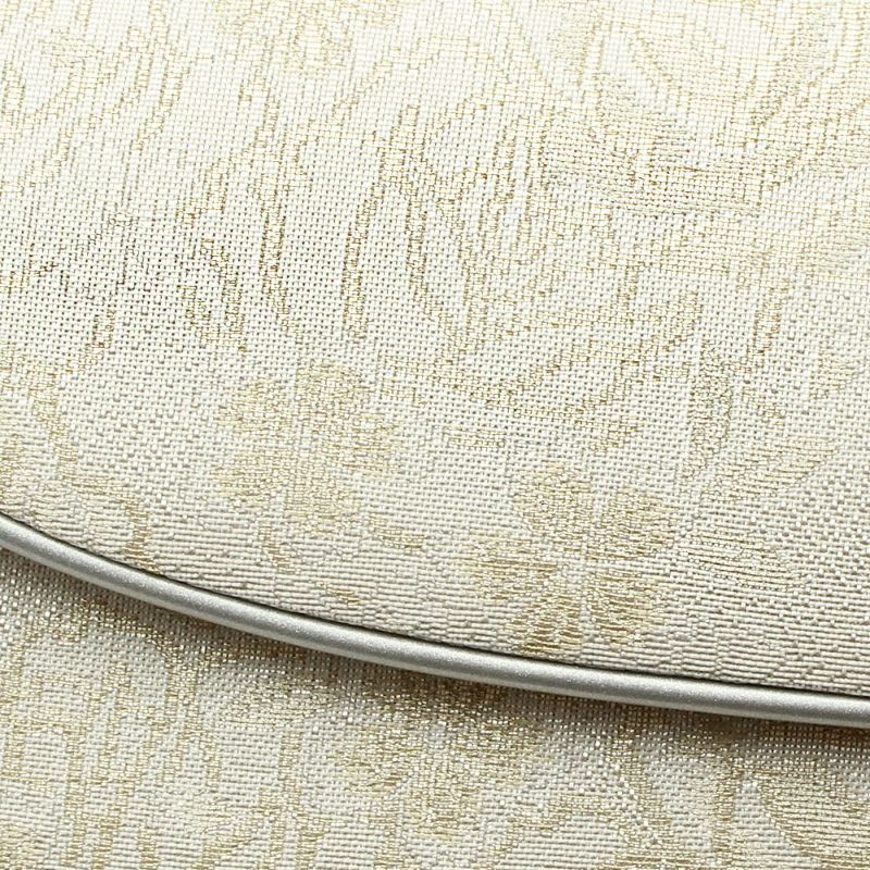 バッグ生地と花緒には、金銀糸をふんだんに使用して柄を描いた、清楚で上品なデザインです。