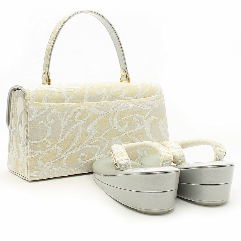 留袖用草履バッグセット 訪問着用 フリーサイズ Lサイズ 日本製 (かぶせタイプ)<シルバー・ゴールド/唐草>
