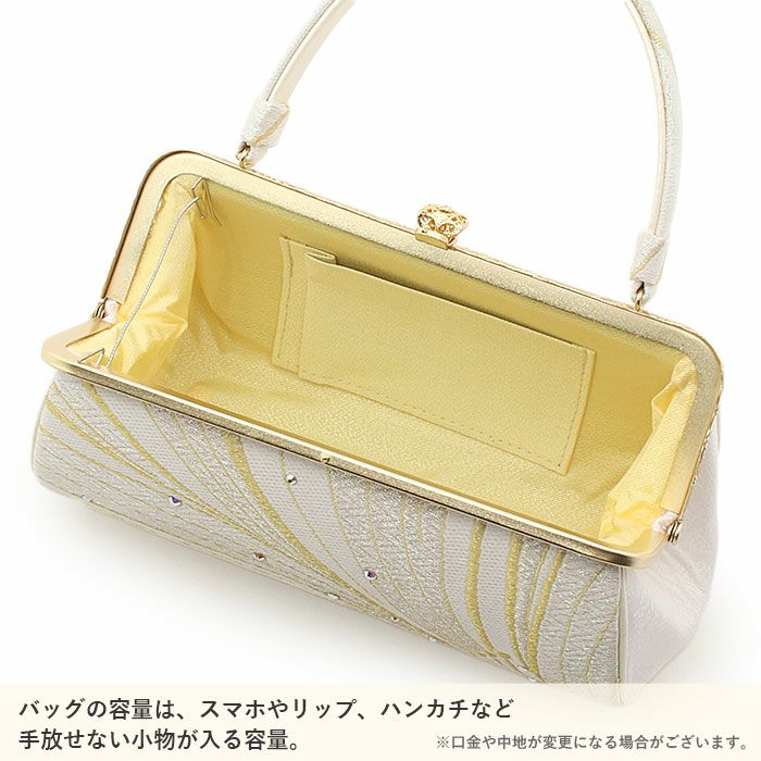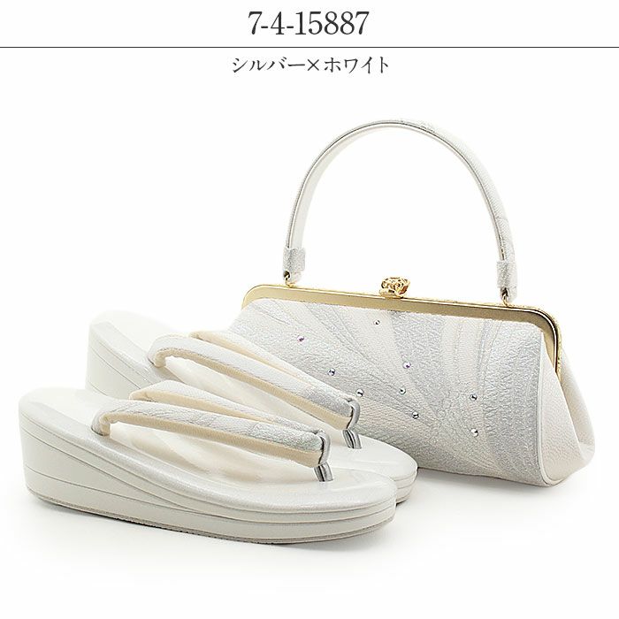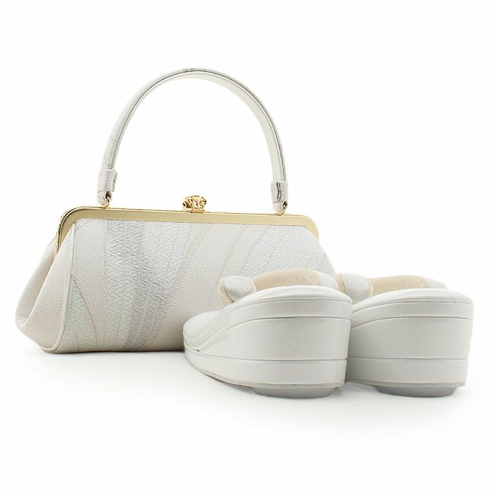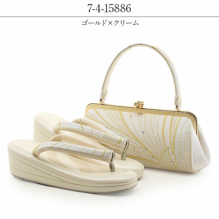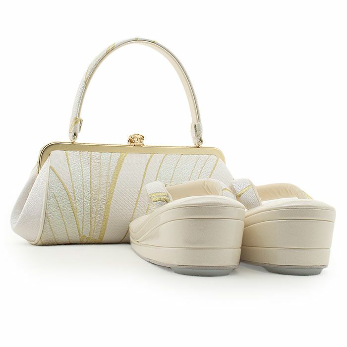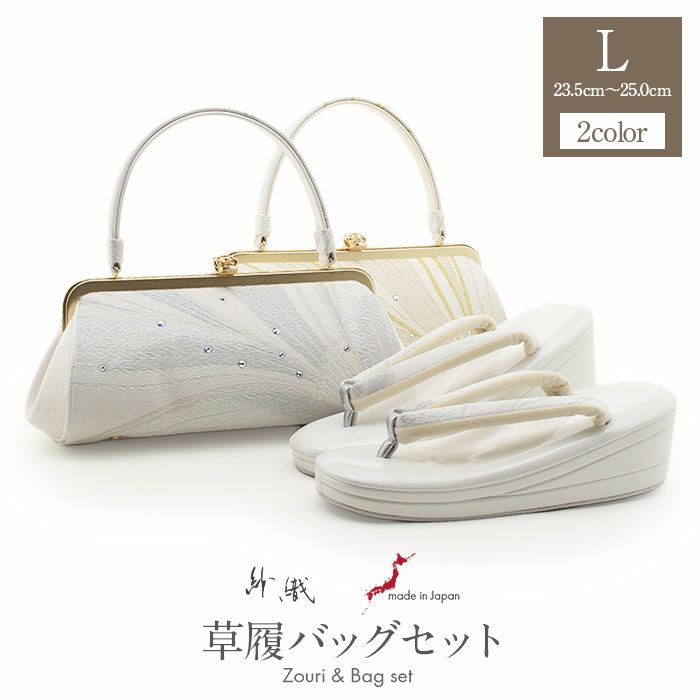 4. 留袖用草履バッグセット 訪問着用 紗織 沙織 Lサイズ 金 クリーム 銀 白 花紋 ラインストーン 西陣織 正絹 帯地 2・3枚芯 日本製