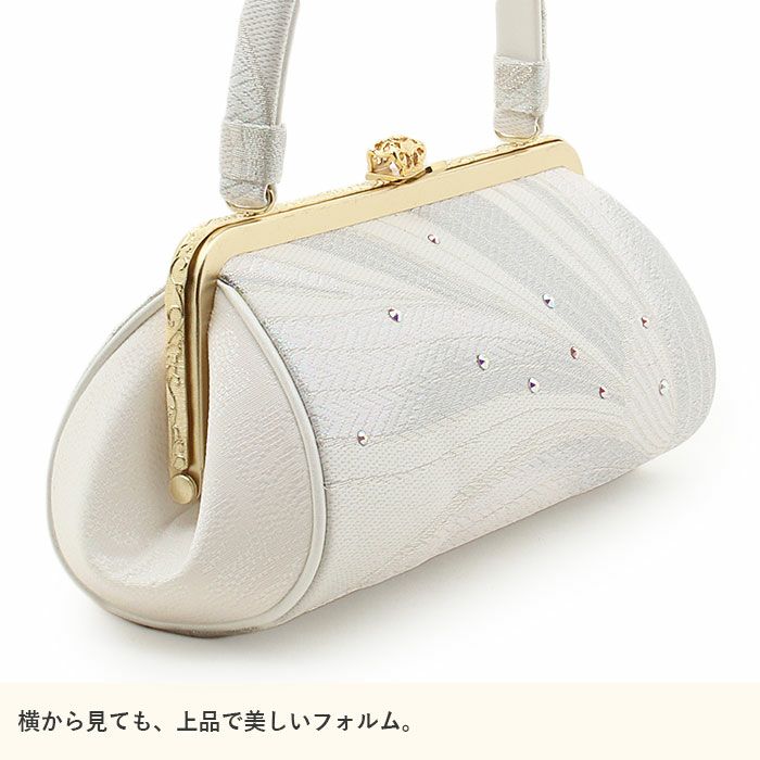 3. 留袖用草履バッグセット 訪問着用 紗織 沙織 Lサイズ 金 クリーム 銀 白 花紋 ラインストーン 西陣織 正絹 帯地 2・3枚芯 日本製
