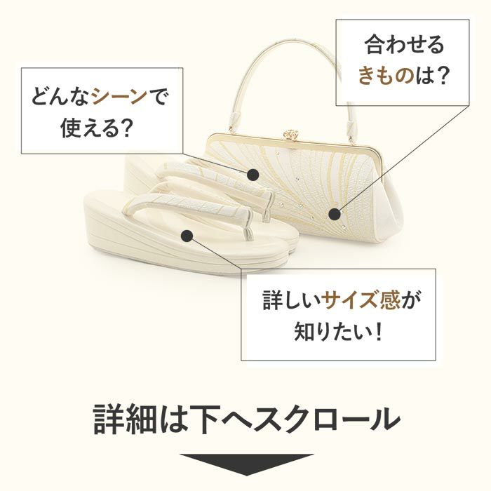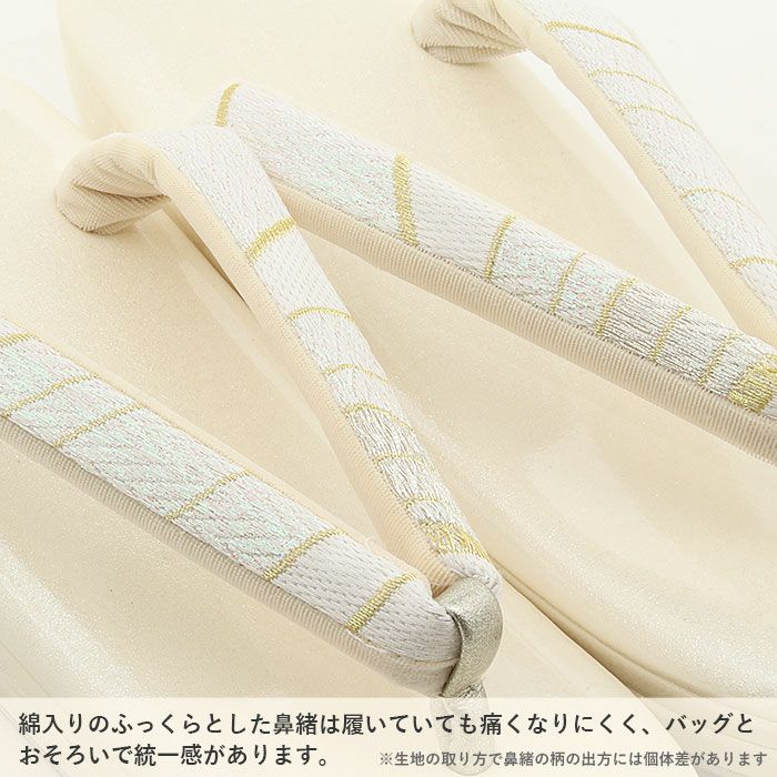 鼻緒にはバッグと同じ生地が使われており、コーディネート全体の統一感を演出します。