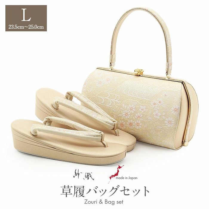 他の画像を見る ≪在庫限り≫ 結婚式の黒留袖 色留袖や訪問着に 草履バッグセット 留袖用 訪問着用 草履バッグ 彩小径 フリーサイズ Lサイズ アイボリー シャンパンゴールド 花文 織生地 1の2枚芯 日本製 当店特別価格 ¥ 38,500 税込 (0) カートに入れる お気に入りに登録する