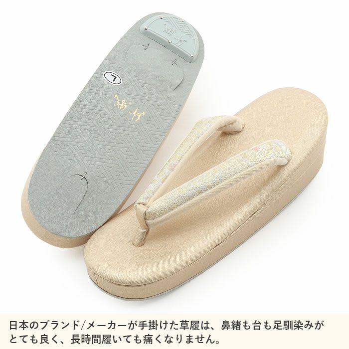 他の画像を見る 痛くなくて歩きやすい、初めての方にも安心の履き心地 草履バッグセット 留袖用 訪問着用 華三彩 キステオリジナル Sサイズ Mサイズ Lサイズ LLサイズ ゴールド シャンパンゴールド シルバー 吉祥紋 織り生地 2枚芯 日本製 当店特別価格 ¥ 29,700 税込 (0) カートに入れる お気に入りに登録する