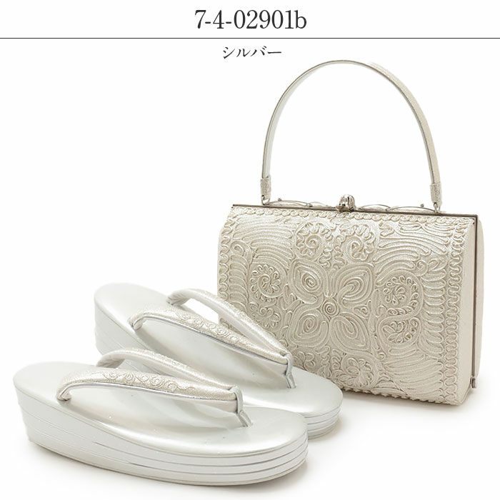 4. 留袖用草履バッグセット 訪問着用 世美庵 Sサイズ Mサイズ Lサイズ LLサイズ シルバー ゴールド コード刺繍 エナメル 3枚芯 日本製