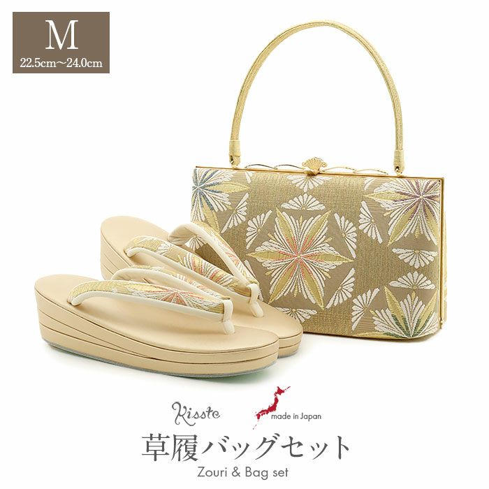 他の画像を見る 痛くなくて歩きやすい、初めての方にも安心の履き心地 草履バッグセット 留袖用 訪問着用 華三彩 キステオリジナル Sサイズ Mサイズ Lサイズ LLサイズ ゴールド シャンパンゴールド シルバー 吉祥紋 織り生地 2枚芯 日本製 当店特別価格 ¥ 29,700 税込 (0) お気に入りに登録する