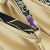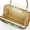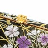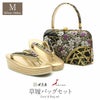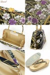 ブラックをベースとした京都・西陣織の正絹袋帯地を使用したバッグ生地と花緒は、籠文に流水や撫子模様が織り込まれた、フォーマルなシーンに相応しい華やかで上品なデザインです。