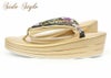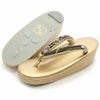 草履は職人さんの手作りによる金箔が散りばめられたゴールドの艶やかなエナメル3枚芯優花緒草履。