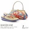 着物雑誌でもお馴染みの「世美庵」ブランドの貴賓の風格漂う最高級草履バッグセットです。 華紋の中に桜や梅、鹿の子等の吉祥柄が描かれた、贅沢で優雅な美しさが振袖姿に相応しい華やかさをもつ逸品です。 バッグの開口部分はビジューを施した口金が煌めく華やかな雰囲気。 一本手で持ちやすいバッグは開口部が大きく開き、バッグの中が見やすく、またお財布やスマートフォンなどが入る程良い大きさです。 底面には底鋲が取り付けられており、汚れや傷が付きにくくなっています。 バッグと同じデザインの草履の花緒が統一感をプラスし、より一層お着物姿を美しく演出します。 かかとの高さは約5.3cmの程よい高さで、艶消しの草履台にはゴールドとブルーのバイカラーが施された3枚芯を採用し、横からのスタイルに華やかさをプラスします。 裏側には滑りにくいゴム底を施しているので、草履に不慣れな方でも足を痛めにくく歩きやすい作りになっております。 足裏の当たる部分はなだらかな曲線のため、前に滑りすぎずきもの初心者の方も履きやすくおすすめの草履です。 ご成人式や結婚式の振袖スタイルをはじめ、卒業式の袴用として幅広くご利用いただけます。 最高級ブランド「世美庵」をぜひお客様の目でお確かめ下さい。