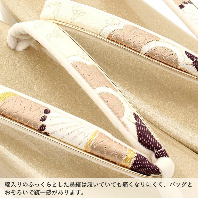 バッグ・花緒:オフホワイト・ゴールド・こげ茶 草履台:ゴールド