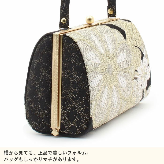 ※実際の商品と同じ色合いに画像修正をしておりますが、環境やモニターの違いにより多少色の違いが出て来ることがあります、ご了承ください。 ※帯地を使用した商品は、商品の性質上どうしても糸のほつれが発生してしまいます。商品不良ではございませんので予めご了承くださいませ。 ※生地の取り方により、柄の出方が異なる場合がございます。 また、製造時期により金具のデザインが若干変更となる場合がございます。 ※製造するうえで十分に注意しておりますが、どうしても傷や汚れ、染料飛びや染料欠けなどができる場合がございます。また、金具部分は金属の性質上、変色やくすみ、傷や汚れなどがある場合がございます。予めご了承のうえ、お買い求めください。