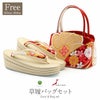 バッグ・鼻緒:レッド・ゴールド・ピンクなど(鮮やかで可愛らしい色味です) 草履台:ゴールド(落ち着いた明るめのゴールド)