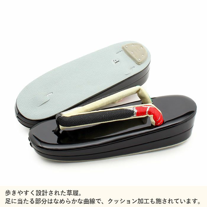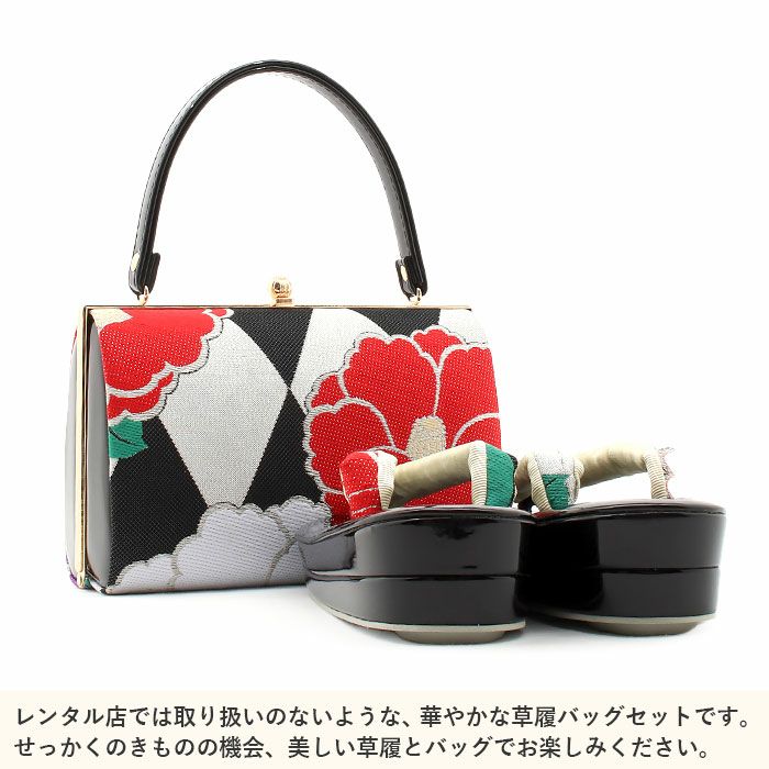 バッグ・花緒:レッド・パープル・ブラック・シルバー 草履台:艶やかなブラック