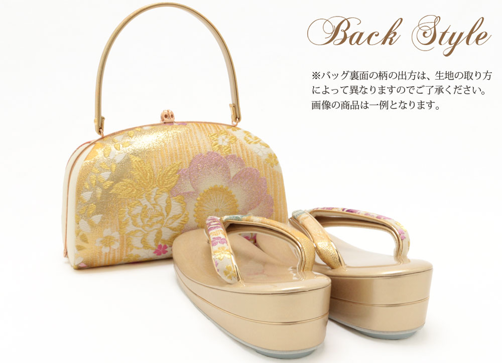 ※草履の花緒、バッグ裏面ともお選びいただくことができませんのでご了承ください。