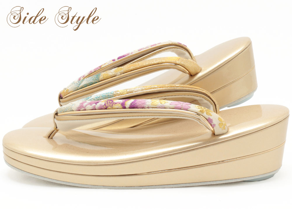 艶やかで光沢のある細かな金箔入りの草履台は、かかとの高さが約5.5cmの程良いヒール高です。
