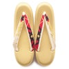 鮮やかな正絹帯地を花緒とバッグに使用した、「彩小径」の振袖用草履バッグセットです。 京都で織り上げられた袋帯を裁断し、熟練の職人が丹念に仕上げたこだわりの逸品です。 金糸をふんだんに使用した大輪の桜紋が施されており、晴れ着スタイルに相応しい豪華で華やかさのあるデザインです。 バッグと同じデザインの草履の花緒が統一感をプラスし、より豪華な佇まいに。 花緒は裏起毛で履き心地の良い仕上がりとなります。 草履台は、ゴールドカラーの3枚芯仕立てになっており 振袖をさらに豪華に演出します。 草履の天部分(表面)にはクッション性ある素材を使用しているので歩きやすく、長時間の歩行も疲れを感じません。 かかとの高さは約5.5cmの程よいヒール高で、小柄なお嬢様はもちろん、身長の高いお嬢様の着姿をも美しく魅せ、歩きやすく足への負担を軽減します。 バッグのサイズは折り畳みのお財布や携帯電話などお祝いの席に必要な貴重品が入るちょうどよい大きさ。 口が大きく開くので荷物や小物類も取り出しやすく、使い勝手のよい設計となっております。 光の角度で浮かび上がるようなキラキラとした金糸の仕立てが格調高い雰囲気。 底面には底鋲が取り付けられており、汚れや傷が付きにくくなっています。 バッグの開口部分は装飾を施した口金で、フォーマルなシーンに相応しく華やかで上品な逸品です。 成人式や結婚式の振袖をはじめ、謝恩会や卒業式など晴着スタイルにご利用いただける振袖用草履バッグセットです。 ぜひお客様の目でお確かめ下さい。