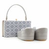 バッグ・花緒:ホワイト×メタリックブラウン ブルーグレイ×グレージュ 草履台:メタリックブラウン グレージュ