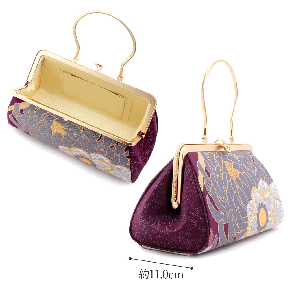 ※実際の商品と同じ色合いに画像修正をしておりますが、環境やモニターの違いにより多少色の違いが出て来ることがあります、ご了承ください。 ※製造するうえで十分に注意しておりますが、どうしても傷や汚れ、染料飛びや染料欠けなどができる場合がございます。また、金具部分は金属の性質上、変色やくすみ、傷や汚れなどがある場合がございます。予めご了承のうえ、お買い求めください。 ※帯地を使用した商品は、商品の性質上どうしても糸のほつれが発生してしまいます。商品不良ではございませんので予めご了承くださいませ。 ※生地の取り方により、柄の出方が異なる場合がございます。