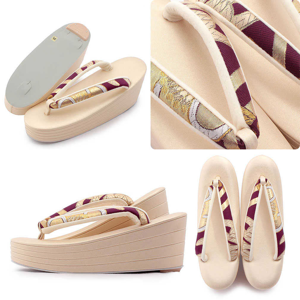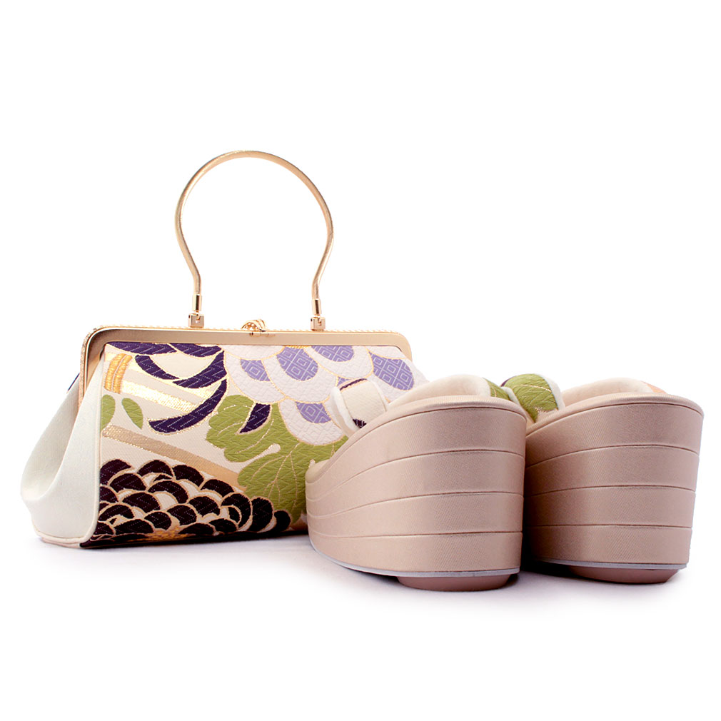 全3色展開 バッグ・花緒:オフホワイト ・紺 / パープル ・灰 / グレー・黄 草履台:ゴールド