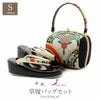 履きものどころ・浅草の有名草履バッグセットブランドの「紗織」が手掛ける 振袖用草履バッグセットです。 成人式や結婚式での振袖や卒業袴といった、華やかなおきものの装いに合わせていただけます。 京都西陣の正絹帯を草履の花緒とバッグに使用したとても豪華な草履バッグセット。 バッグ生地と花緒には、若松・桜などの吉祥丸紋が色鮮やかに織り込まれ、振袖に相応しい上品で華やかさのある逸品です。 繊維1本1本にパールトーン加工(撥水・速乾・防カビ効果)を施し、風合いや光沢、美しさを保ち長くご愛用いただけます。 バッグは、小ぶりなお財布やスマートフォン、ハンカチや口紅などの手放せない手荷物が入る容量。 でも見た目が大きすぎることはなく、すっきりとしたサイズ感なのが嬉しいポイントです。 底鋲もついて、畳や机に置くときにバッグ本体を擦ってしまうのを防ぐことができます。 お母様やお姉様の振袖を受け継いで、草履バッグセットを新調したコーディネートにするお嬢様も多くいらっしゃいます。 レンタル店や写真館などでは貸し出しの草履バッグセットもありますが、レンタルではなかなか出回らない繊細なお作りやお洒落なデザインの草履バッグは振袖コーデの中でもぱっと目を引く存在になるでしょう。 華やかな装いを楽しみたい日のおともに、ぜひお手に取っていただきたい草履バッグセットです。