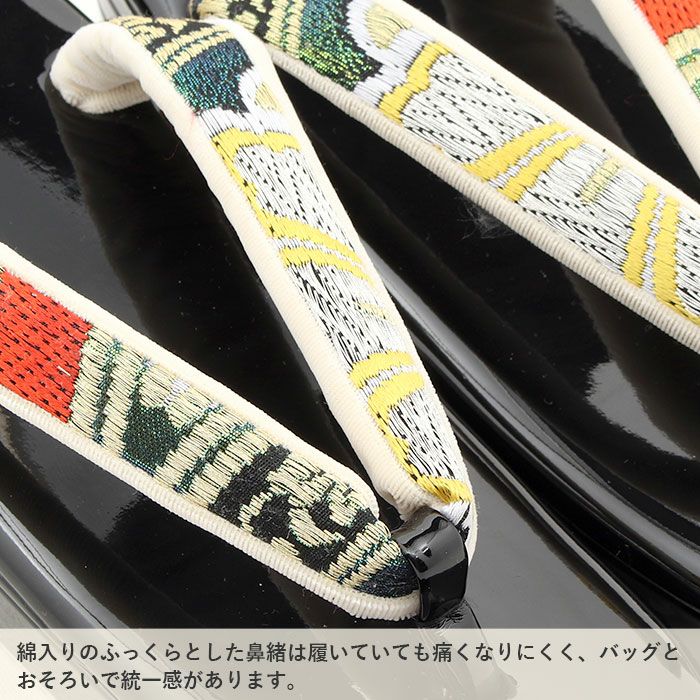 バッグ・花緒:ブラック・ゴールド・朱赤など 草履台:エナメルブラック