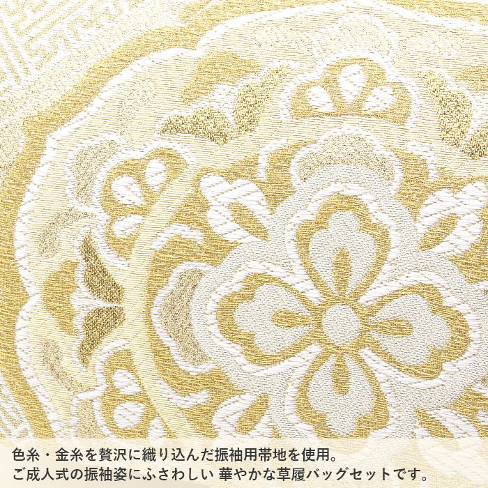 草履台/草履裏:合成皮革(エナメル) バッグ生地部分:振袖用帯地