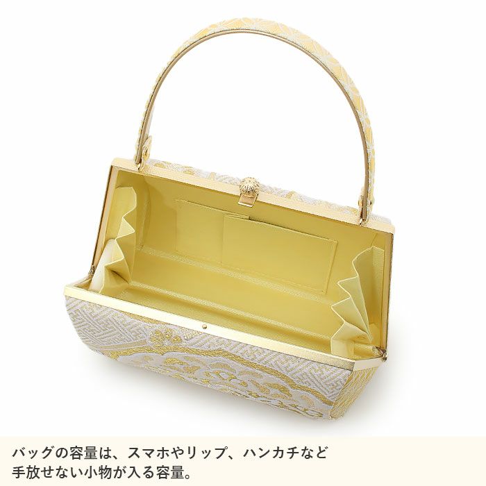 ※実際の商品と同じ色合いに画像修正をしておりますが、環境やモニターの違いにより多少色の違いが出て来ることがあります、ご了承ください。 ※帯地を使用した商品は、商品の性質上どうしても糸のほつれが発生してしまいます。商品不良ではございませんので予めご了承くださいませ。 ※製造するうえで十分に注意しておりますが、どうしても傷や汚れ、染料飛びや染料欠けなどができる場合がございます。また、金具部分は金属の性質上、変色やくすみ、傷や汚れなどがある場合がございます。予めご了承のうえ、お買い求めください。