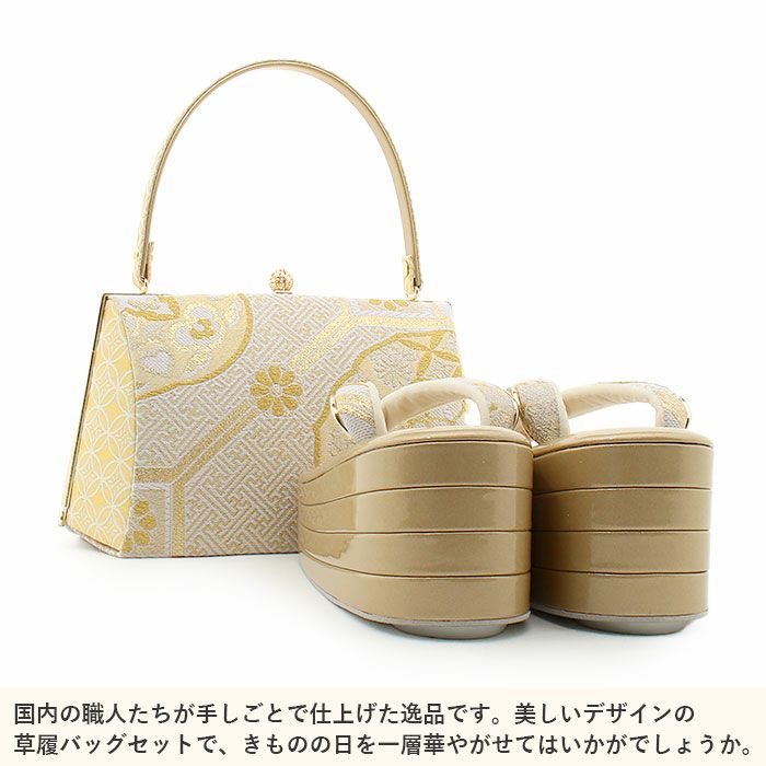 バッグ・花緒:ゴールド 草履台:ゴールド