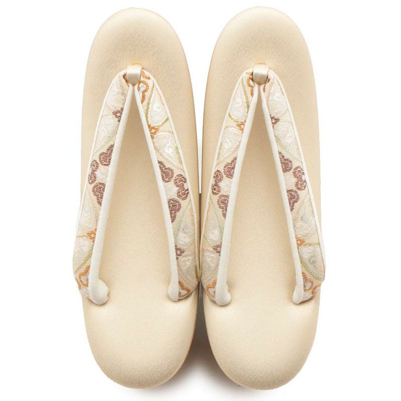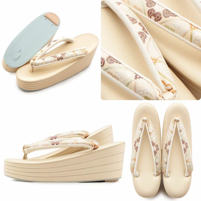 痛くなくて歩きやすい、初めての方にも安心の履き心地 草履バッグセット 留袖用 訪問着用 ハイヒール 厚底 結婚式 草履 バッグ 留袖 Sサイズ 小さい ベージュ 七宝 花菱 京都 西陣 キステオリジナル 日本製