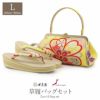 国内工場で一貫して草履を製造する高級草履メーカー「世美庵」が手掛ける振袖用草履バッグセットです。 成人式や結婚式での振袖や卒業袴といった、華やかなおきものの装いに合わせていただけます。 日本製の草履は、足馴染みがとても良く、長時間履いても痛くなりにくい仕様です。 バッグと同じデザインの草履の花緒が統一感をプラスし、より豪華な佇まいに。 花緒には、足にフィットする柔らかな「優花緒」が使われた足に優しい作り。 3枚芯の草履は横からのスタイルに華やかさを添える逸品です。 かかとの高さは約5.5cmのヒール高で、着姿を美しく魅せてくれます。 ふっくらとした上質な織感を楽しんでいただける帯地を使用したバッグ生地と花緒には、華紋に鹿の子などの有職文様が織り込まれた振袖に相応しい華やなデザイン。 織り込まれた金糸が煌びやかな輝きを放ち、お着物姿をさらに美しく演出します。 バッグは、小ぶりなお財布やスマートフォン、ハンカチや口紅などの手放せない手荷物が入るゆったり容量。 でも見た目が大きすぎることはなく、すっきりとしたサイズ感なのが嬉しいポイントです。 底鋲もついて、畳や机に置くときにバッグ本体を擦ってしまうのを防ぐことができます。 お母様やお姉様の振袖を受け継いで、草履バッグセットを新調したコーディネートにするお嬢様も多くいらっしゃいます。 レンタル店や写真館などでは貸し出しの草履バッグセットもありますが、レンタルではなかなか出回らない繊細なお作りやお洒落なデザインの草履バッグは振袖コーデの中でもぱっと目を引く存在になるでしょう。 華やかな装いを楽しみたい日のおともに、ぜひお手に取っていただきたい草履バッグセットです。