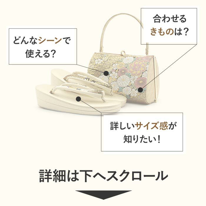 他の画像を見る 痛くなく歩きやすい、初めての方にも安心の履き心地 草履バッグセット 成人式 振袖用 成人用 世美庵 Lサイズ 百合 ダマスク ベージュ ホワイト 金 帯地 バンブー飾り 竹 がま口 3枚芯 優花緒 日本製 当店特別価格 ¥ 41,800 税込 在庫切れ お気に入りに登録する
