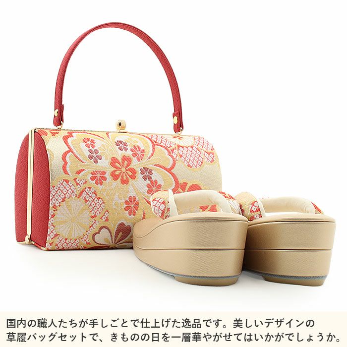 他の画像を見る 痛くなく歩きやすい、初めての方にも安心の履き心地 草履バッグセット 成人式 振袖用 成人用 世美庵 Lサイズ 赤 レッド ゴールド 花紋 桜 袋帯地 3枚芯 日本製 当店特別価格 ¥ 47,300 税込 在庫切れ 詳細を見る お気に入りに登録する