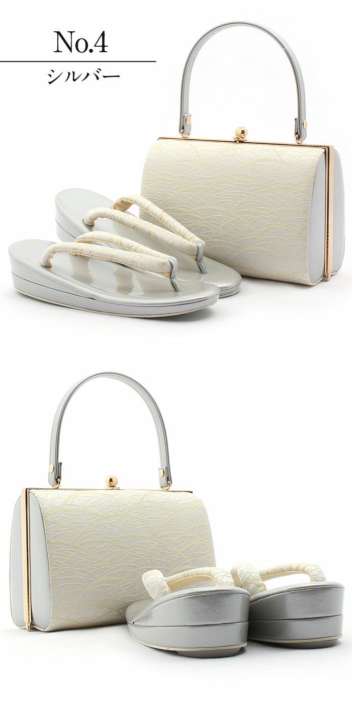 草履バッグセット 留袖用 訪問着用 <紗織> Sサイズ Mサイズ Lサイズ LLサイズ フリーサイズ 日本製 <シルバー/小花>