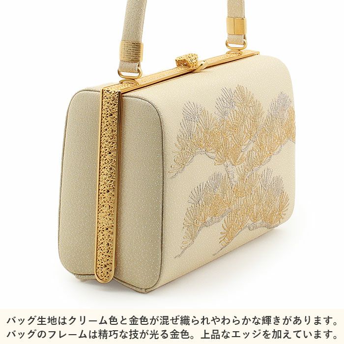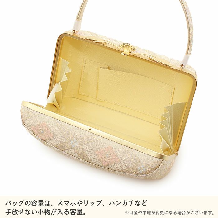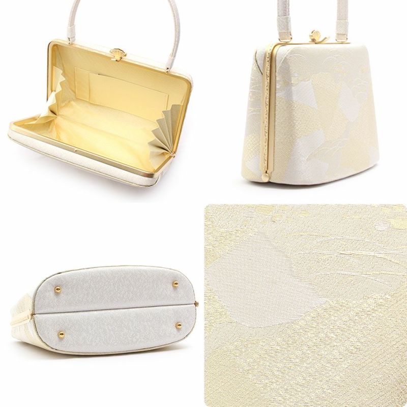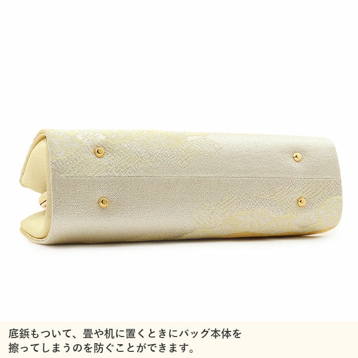 利休バッグ <クリーム&ゴールド/雪輪華紋> 正絹帯地 日本製高級バッグ