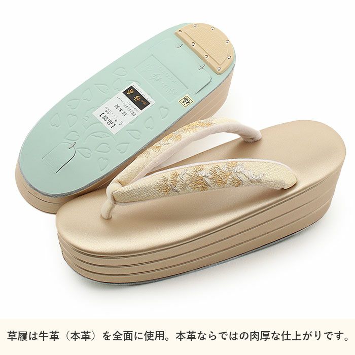 花刺繍の花緒が華やかな振袖・袴・訪問着草履 草履 厚底 成人式 振袖 Sサイズ Mサイズ Lサイズ LLサイズ ゴールド 花 刺繍 日本製