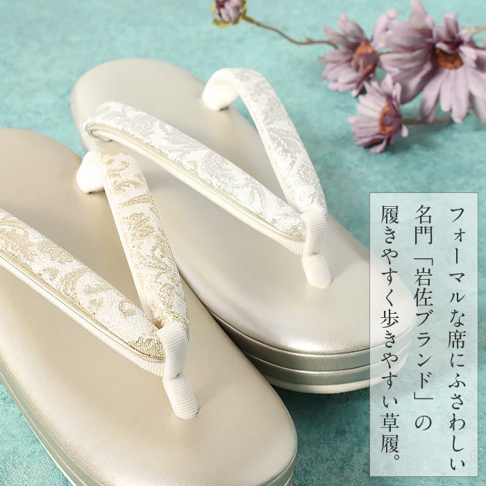 岩佐謹製の 「キステオリジナル」痛くなくて歩きやすい 草履 留袖用 訪問着用 レディース キステオリジナル 岩佐 Mサイズ Lサイズ シルバー ゴールド 金 銀 唐花 リーフ 帯地 合皮 2枚芯 日本製 キステオリジナル
