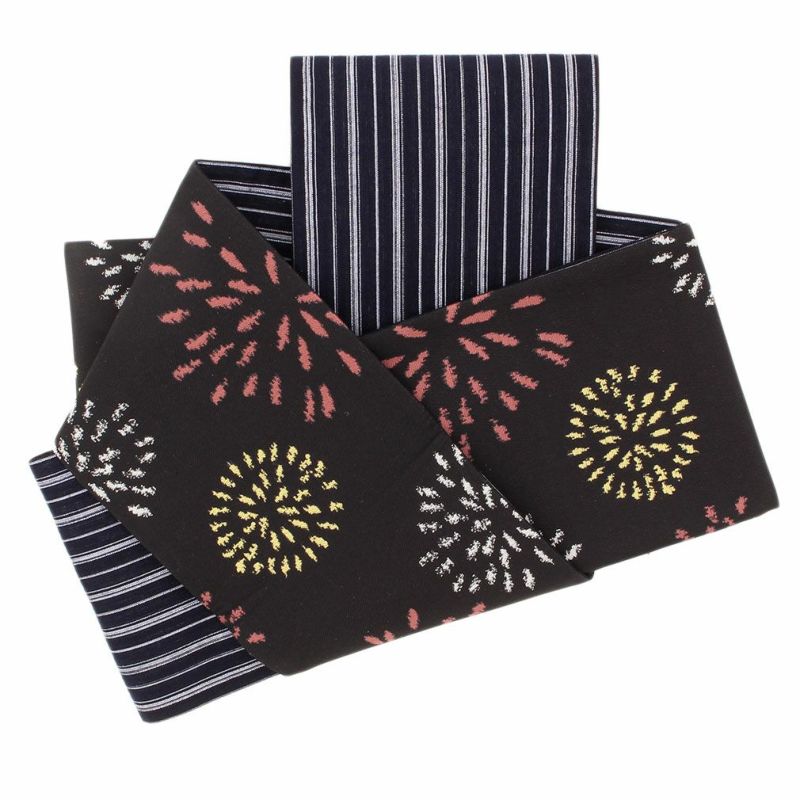 【最短日お届け】《西陣×阿波しじら》小紋などのカジュアルなお着物や夏の着物・単衣に 半幅帯 正絹 リバーシブル 西陣織 阿波しじら織 帯 花火 田中伝機 日本製