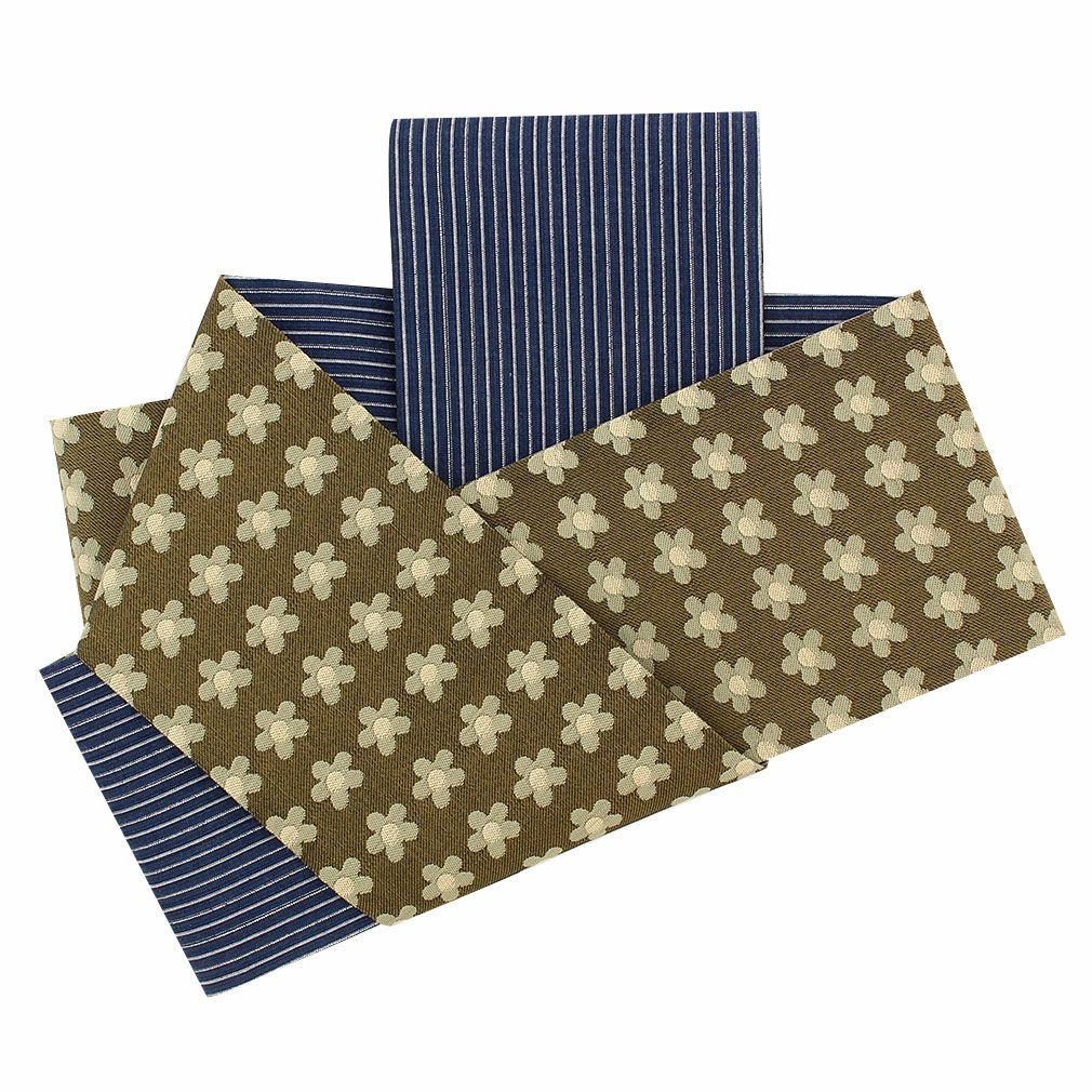 【最短日お届け】《西陣×阿波しじら》小紋などのカジュアルなお着物や夏の着物・単衣に 半幅帯 正絹 リバーシブル 西陣織 阿波しじら織 帯 花 縞 田中伝機 日本製