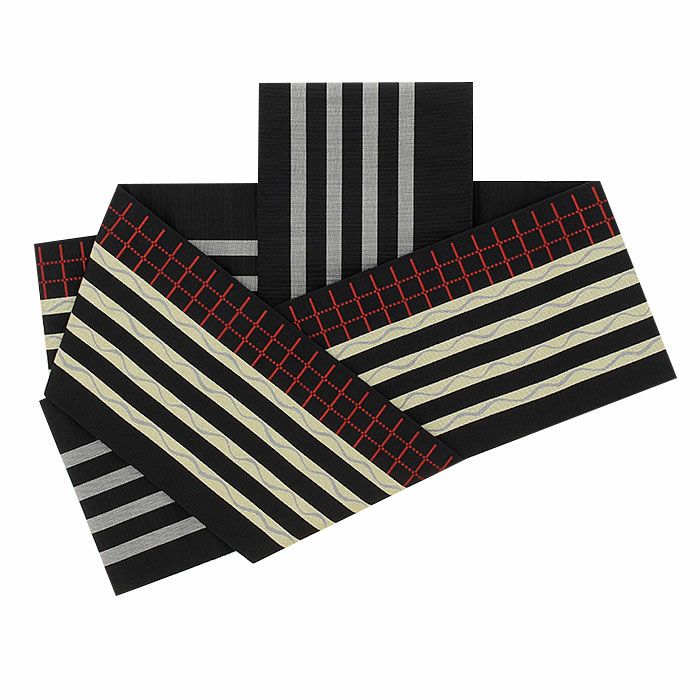 【最短日お届け】《博多帯》締めやすく帯崩れしにくい カジュアルなお着物に 半幅帯 帯 本場筑前博多織 小袋帯 正絹 黒 縞 格子 波 小野織物 日本製 小紋 紬 街着 カジュアル 半巾帯 小袋 博多 普段用