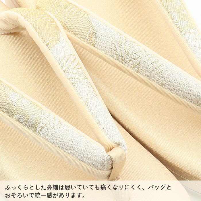 痛くなくて歩きやすい、初めての方にも安心の履き心地 草履バッグセット 留袖用 訪問着用 華三彩 キステオリジナル Sサイズ Mサイズ Lサイズ LLサイズ ゴールド シャンパンゴールド シルバー 吉祥紋 織り生地 2枚芯 日本製
