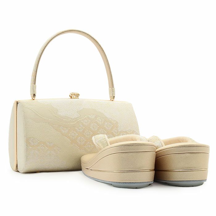 草履バッグ セット 留袖用 訪問着用 <華三彩> Sサイズ Mサイズ Lサイズ LLサイズ 日本製 綴れ織<シャンパンゴールド/菊菱>