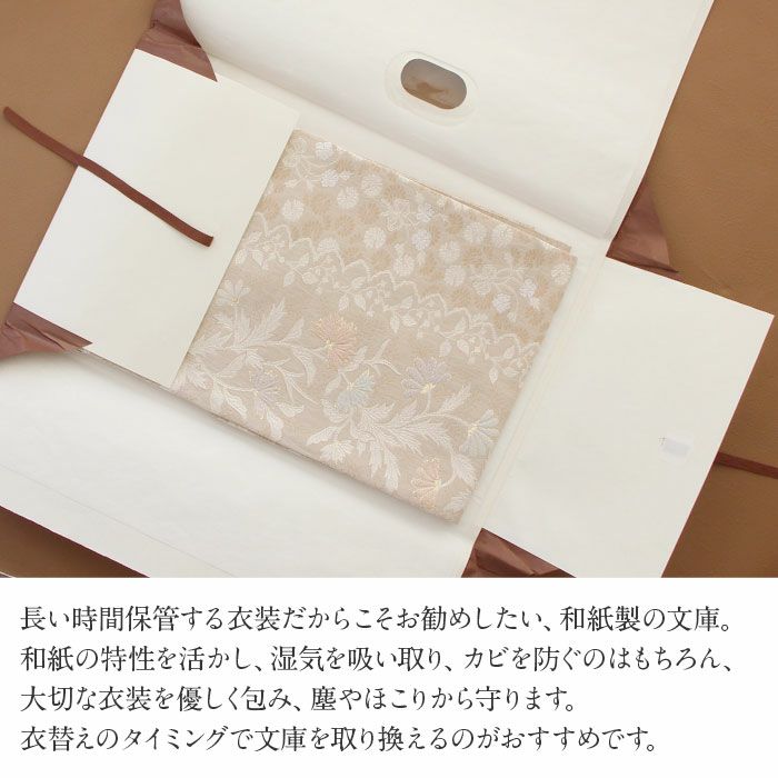 折らずに発送 最高級美濃和紙を用いて作った文庫 たとう紙 和紙 帯 帯用 文庫 1枚 美濃和紙 小 55cm 名古屋帯 袋帯 お宮参り 産着 生成 ステンドグラス キステオリジナル 和紙 日本製 薄紙付き 小窓付き