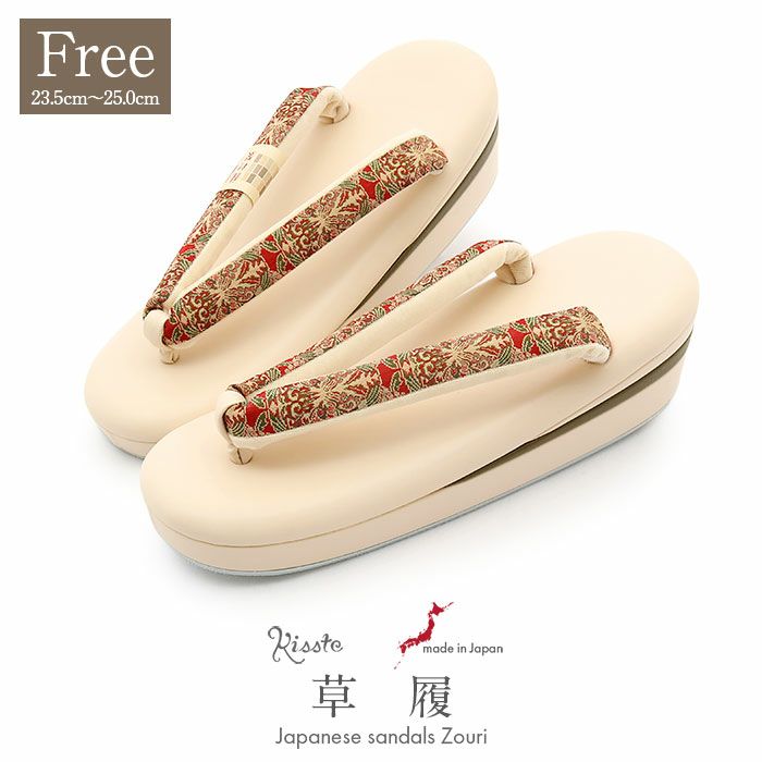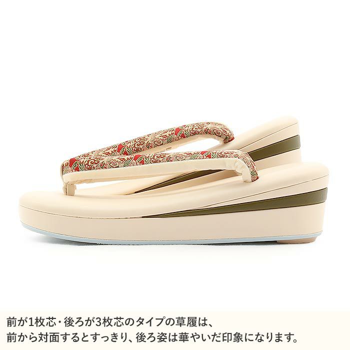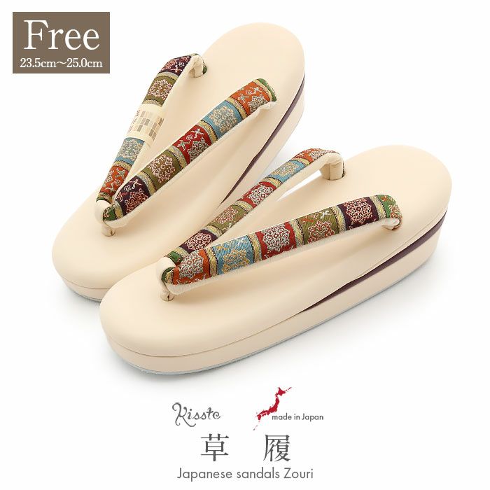 小紋 紬 色無地 御召 ウール 木綿 など普段着きものに 草履 レディース 普段用 カジュアル草履 龍村裂 龍村美術織物裂 フリー クリーム ベージュ エンジ 壬生寺裂 後ろ3枚芯 日本製