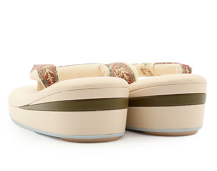 小紋 紬 色無地 御召 ウール 木綿 など普段着きものに 草履 レディース 普段用 カジュアル草履 龍村裂 龍村美術織物裂 フリー クリーム ベージュ 唐花雙鳥長斑錦 後ろ3枚芯 日本製