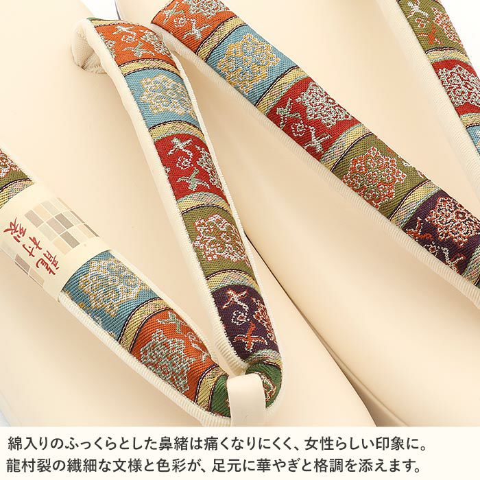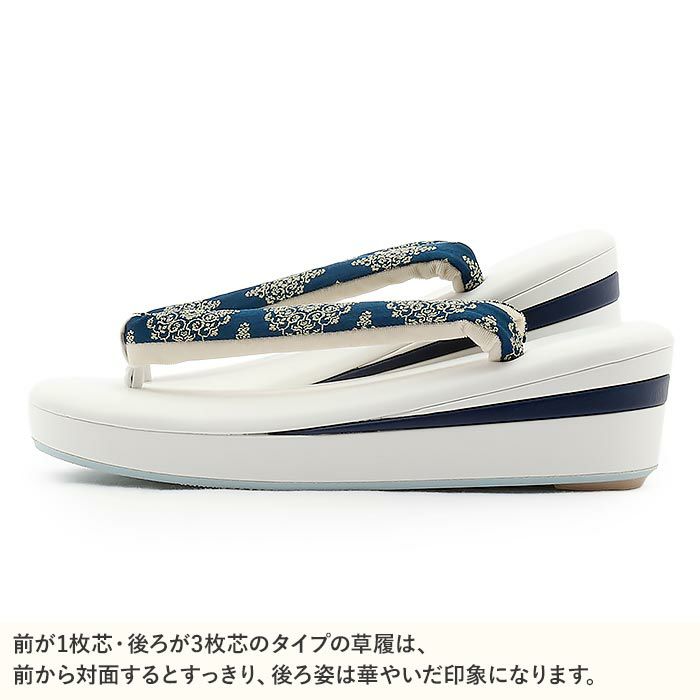 小紋 紬 色無地 御召 ウール 木綿 など普段着きものに 草履 レディース 普段用 カジュアル草履 龍村裂 龍村美術織物裂 フリー 白 ホワイト 紺 ネイビー 稜華文錦 後ろ3枚芯 日本製