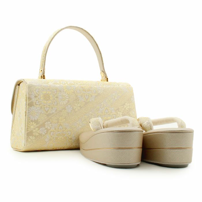 草履バッグセット 礼装用 <世美庵> Lサイズ 正絹袋帯地 <ゴールド/桜と辻ヶ花> 日本製