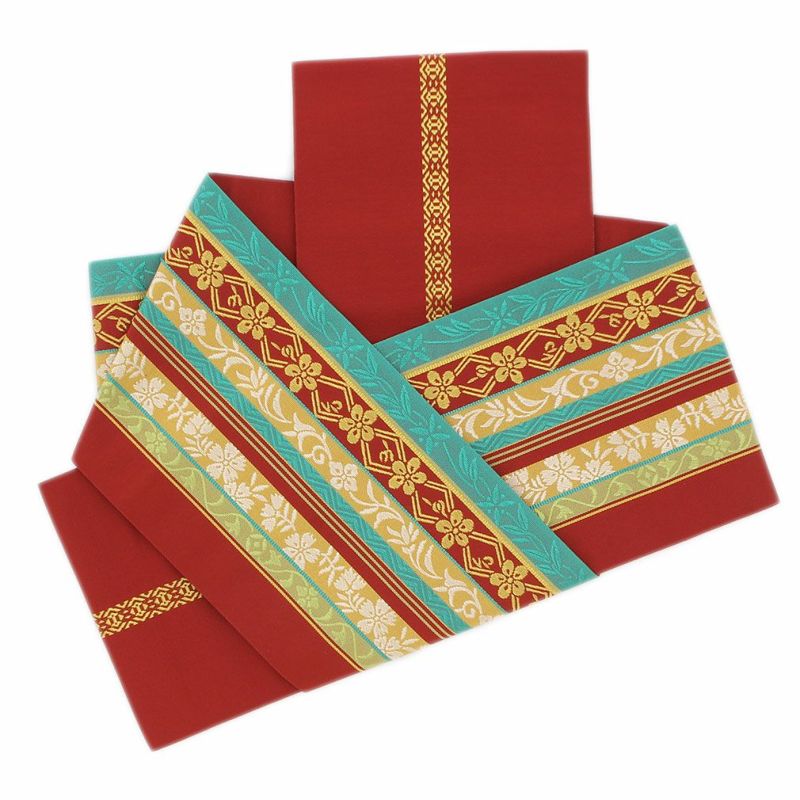 《値下げ!68000円→55000円》《お仕立て上り・送料込》【最短日お届け】夏の単衣・薄物のお着物に 夏帯 八寸 名古屋帯 <赤香色/名物裂> 正絹 羅 本場筑前博多織 <福絖織物> 仕立て上がり