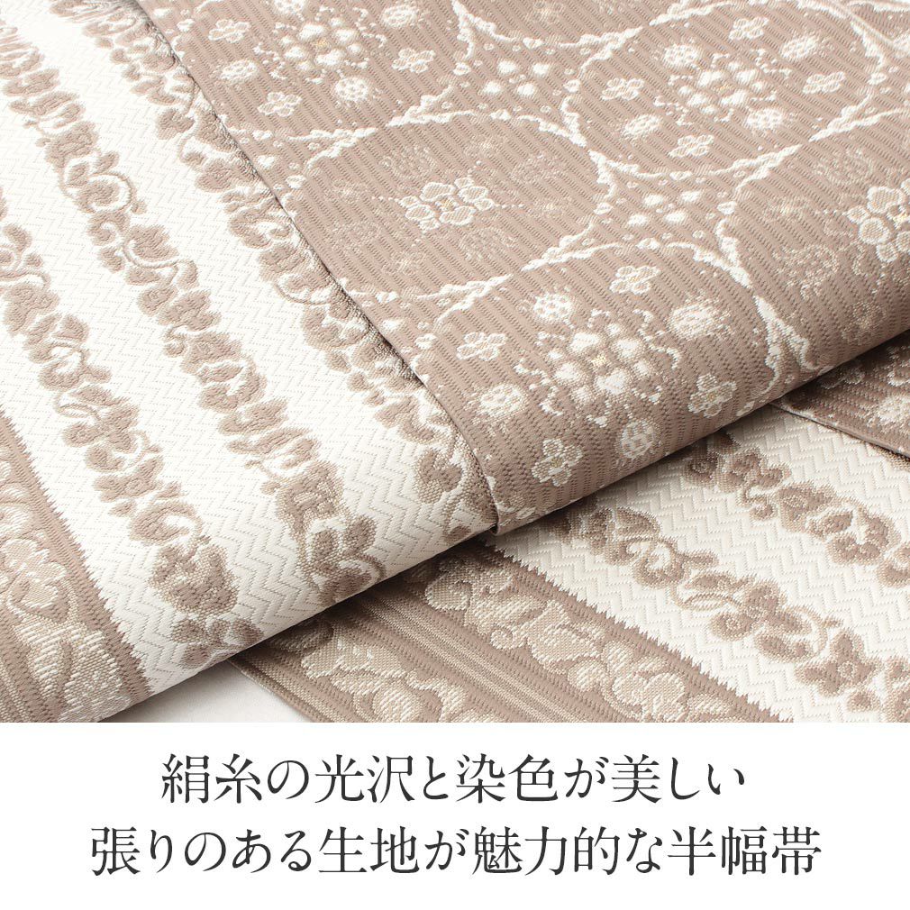 【最短日お届け】《博多帯》締めやすく帯崩れしにくい カジュアルなお着物に 博多織 半幅帯 絹 帯 ライトブラウン 茶 縞 唐草 小野織物 日本製 本場筑前 半巾帯 小袋帯