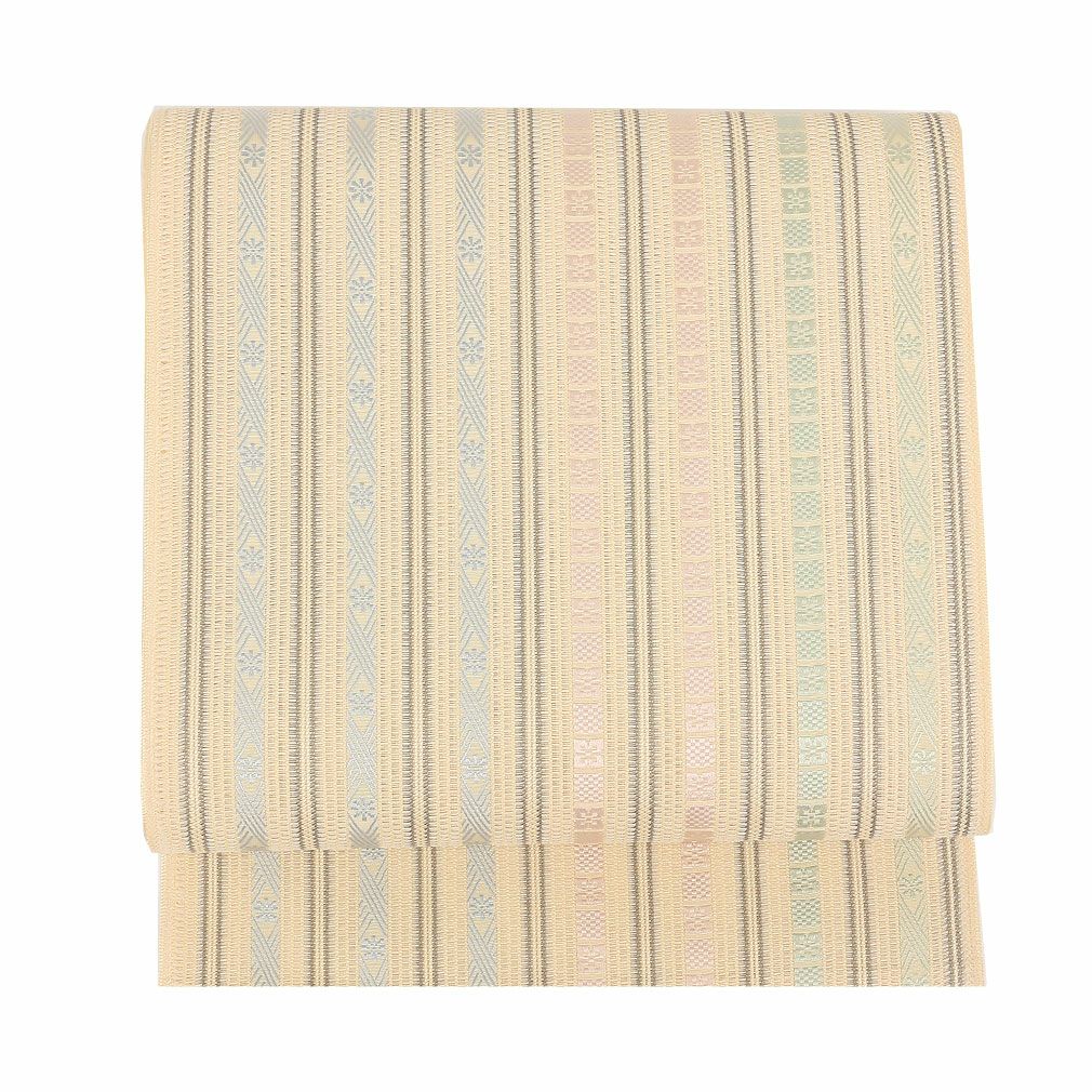 《お仕立て上り》【最短日お届け】年中通して普段着や茶道 華道などのお稽古に 名古屋帯 博多帯 博多織 帯 八寸 ベージュ 縞 ダマスク 協和織工場 正絹 仕立て上がり