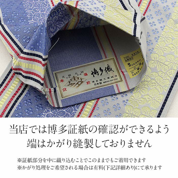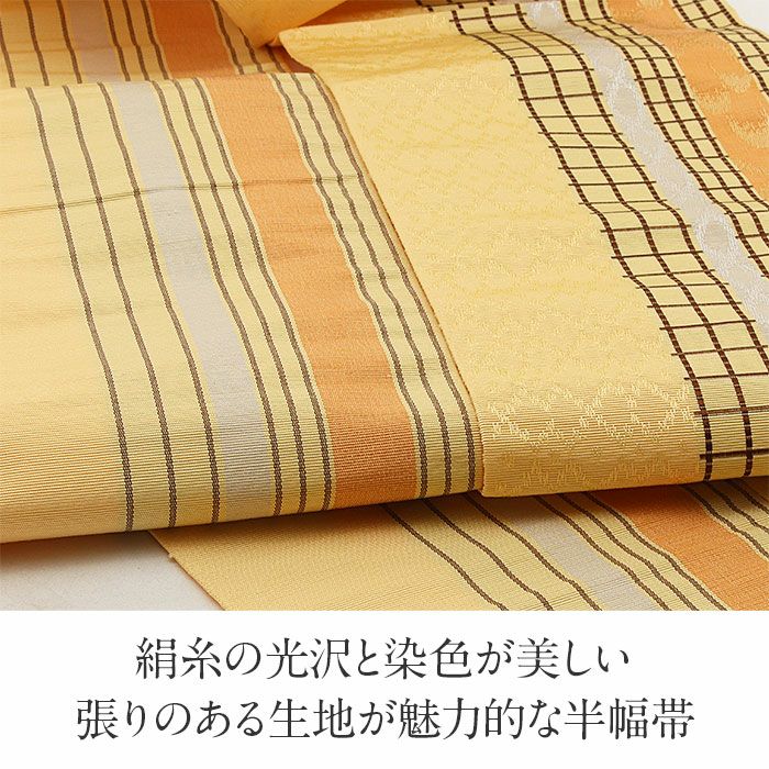 【最短日お届け】《博多帯》締めやすく帯崩れしにくい カジュアルなお着物に 博多織 半幅帯 絹 帯 白 青 黄 薄橙 縞 唐花 小野織物 日本製 本場筑前 半巾帯 小袋帯